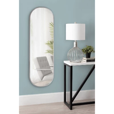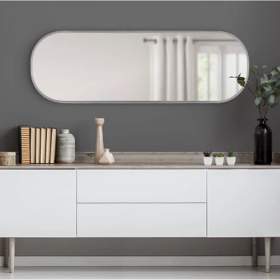 Add a dash of modern simplicity to your home with this beautiful capsule-like mirror from Kate and Laurel. It takes design cues from modern minimalist decor, featuring a beautiful charcoal gray finish. This kind of premium finish means that each Caskill wall mirror delivers a true masterpiece of elegant craftsmanship. Just take a look at the wall mirror’s capsule shape: it presents a refinement of clean, curved edges that uphold elegant simplicity above all else. Adding a mirror to your home opens up your smaller spaces by reflecting and spreading light, providing more dimension and openness. Use it as a decadent, decorative accent in your living room, bedroom, or entryway, or mount it in your master bathroom as a vanity mirror. The metal D-ring hangers make the Caskill Oval Mirror easy to hang in both portrait and landscape orientations. This particular version of the Caskill Mirror is 16 inches by 48 inches, providing an excellent focal point that doesn’t overshadow any of your other decor pieces.