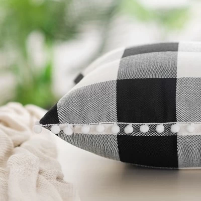 These decorative throw pillow covers with pompoms are made of polyester. Perfect to decorate your home in a fashionable way. The invisible zipper is very convenient to use and ensures the beauty of throw pillow. The zipper hides well for a finished look. Fit pillow perfectly, it is attached well. Since the pillow cover is decorated with pompoms around the zipper, please reverse all pompoms to one side before opening the zipper, and then gently pull them open to avoid the zipper getting stuck. Total Size:18″ x 18″(45 x 45cm). DOES NOT INCLUDE PILLOW INSERTS! Our plaid cushion covers are available for different colors, so you can match whichever color tone you like will go best with your decors in Living room, Bedroom, Office and Car. Washing Tips: Turn it inside out to wash. Wash by hand in cold water or machine wash (washing bag and gentle cycle recommended) separately in low temperature. No and iron. Tumble dry or hang to dry.Package Included:1/2/4 Pcs plaid throw pillow covers. DOES NOT INCLUDE PILLOW INSERTS!
