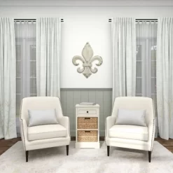 Make a design statement with the Antigua Crossed Double Circle Shelf Unit. Simple and understated, this shelf unit features an industrial style with two levels of distressed wood finish laminate shelves held together by circular black metal frames. An effortless addition to all modern spaces, thanks to its sophisticated, pared-down design. Mount it in your living room or bedroom to store or display picture frames, books, vases, keepsakes, and collectibles; or use it to update your kitchen or bathroom décor while storing kitchen or bathroom supplies.