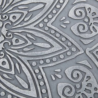 Update your home decor with the Madison Park gray Medallion Carved Wood Round Wall Decor. This round wall decor features a globally inspired carved design on the gray MDF, creating a stone look finish. A black wood frame adds a bold touch to complement the design, while two D-rings on the back make this wall art piece easy to hang. Measuring 25.2” in diameter, this medallion carved wall panel brings a one-of-a-kind touch to your decor.