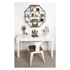 - Industrial farmhouse style metal framed mirror with a wooden shelf for your kitchen or entryway organization
