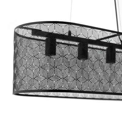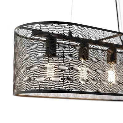 With the 30″ Gianna Black Cage 4-Light Hanging Chandelier, you can add plenty of overhead lighting above your kitchen or dining table while complementing your industrial or modern farmhouse style decor. This hanging pendant lamp is designed with a black canopy, cord and fixtures for a cohesive look, and an oblong black cage shade with punched-out detail in the metal surrounds the bulbs while letting lots of light shine through. Compatible with LED, incandescent or CFL bulbs, this hanging ceiling light can be placed at a drop from 20 inches to 59 inches from your ceiling, so you can get the perfect position for adding light to your kitchen workspace or creating an elegant focal point above your table for entertaining.
