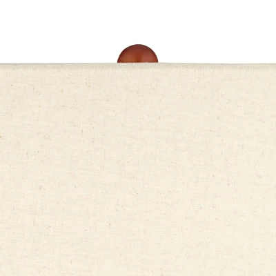 From the 360 Lighting brand of modern lighting, the Amelia table lamp offers a bright and appealing accent for your decor. Inspired by Mid-Century and modern lamp design, the Amelia features a double gourd ceramic lamp body in a matte black glaze finish. A wooden lamp neck adds a warm organic touch, while up top is a tapered drum lamp shade in a light oatmeal color fabric.