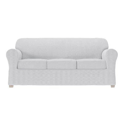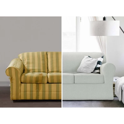 - Easy-to-install 4-piece construction with multi-way stretching has a separate slipcover and a 3 individual seat cushion covers; there are fewer seams and no troublesome zippers to worry about during installation