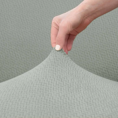 - This value slipcover has modern textured knit construction with premium touches that make it an easy choice to cover your existing furniture instead of replacing it
