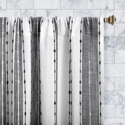 Infuse southwestern chic into any room of your home with the Slub Texture Stripe Cotton Cafe Curtain Valance from Archaeo. Featuring yarn-dyed vertical stripes, this slub textured semi-sheer cotton fabric gently filters light while enhancing privacy. Ideal for kitchens, bathrooms, or small windows, the pole top rod pocket design allows for simple slide-through installation on curtain rods up to 1.5” in diameter Sold as individual valances. Coordinating tier pairs or swag pairs are sold separately. Measure carefully before selecting your desired size. Rod not included. Hand wash using cold water. Use non-chlorine bleach when needed.