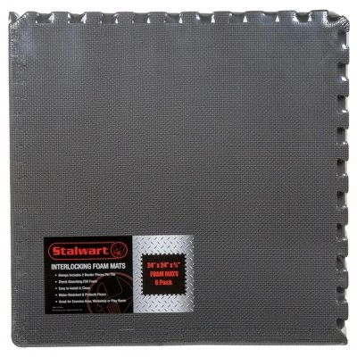 Foam Mat Floor Tiles, Interlocking EVA Foam Padding By Stalwart – Soft Flooring For Exercising, Yoga, Camping, Playroom – 6 Pack, .375 Inches Thick