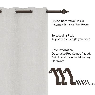 - Rod is 1-inch in diameter and is adjustable in length from 66-in to 120-in to accommodate most window sizes