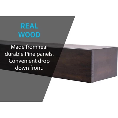 The Houston Wood Mantel Shelf is a simple design that packs a surprising punch. This shelf features a convenient drop down front with soft-close hinges, that allows you to store remotes, manuals and the other nic-naks you don’t regularly want in-sight. Crafted from durable Pine, this shelf offers a quality look with beautiful finishes that allow the natural variation of the wood to be on full display. Designed with easy installation in mind, minimal tools and skills are required. Available in 48″, 60″ and 72″ lengths and finished in Mocha, Coffee Bean, Cinnamon & Vintage Ash.