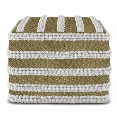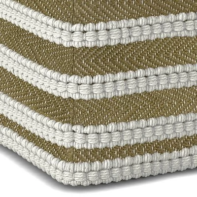 Add panache to your outdoor or indoor living space with Jericho Square Woven Outdoor/ Indoor Pouf. This pouf is perfect for use as a footstool or as extra seating. Featuring a striped pattern this square-shaped pouf boasts durable and easy-care woven polyester that is water and UV resistant. This versatile pouf is sure to enhance the style of your decor.