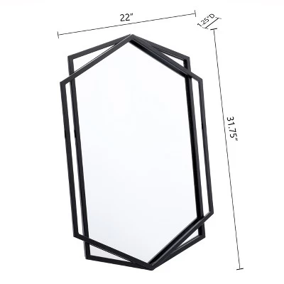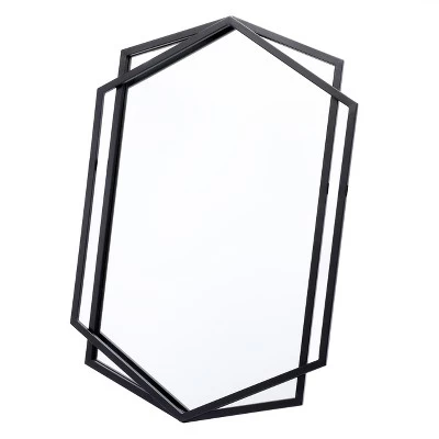 Combining beauty with function, this accent wall mirror features a modern style inspired by a minimalist design with its clean lines and angular structures. Decorate your wall with this slim metal frame and decorative mirror. The accent mirror features two overlapping hexagonal metal frame in a matte black finish. The metal-on-metal design is perfect for creating a fresh and open feeling in your entryway, hall, bedroom, and other interior spaces. The artful design allows this decorative piece to complement your existing decor seamlessly. Place the mirror in your hallway entrance or above a console table making it an instant conversation point in any room.