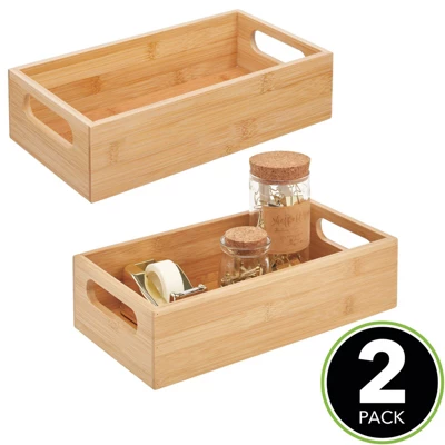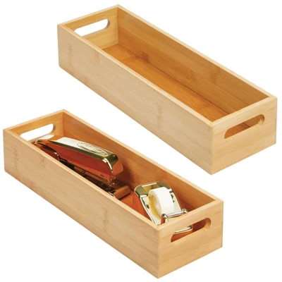 The mDesign Office and Desk Storage Organizer Bins create a neat and tidy workspace. Use it in the office, at school, in your art studio, or in a garage workshop. Built-in handles make it easy to transport. Keep all of your office supplies organized and easy to find. These versatile bins are great in any room of the home – many use them in the media room for storing dvds, cds, video games, headsets and other gaming supplies.