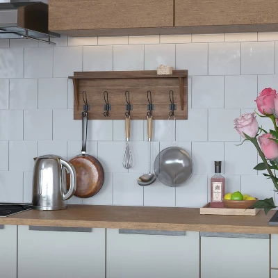 Maintain your unique style while also maximizing your living space with this wall mounted coat rack. Featuring 5 hanging hooks that hold up to 10 pounds each, this beautifully crafted organizational shelf will keep your coats, bags, belts, or scarves neat and tidy. Made from solid pine wood and available in multiple colors this enduring piece harmoniously blends classic style with 21st century functionality.