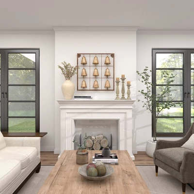 - •This wall plaque features 9 metal bells attached to separate compartments in this square profiled frame