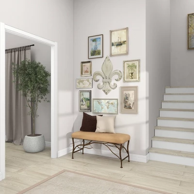 - •This iron wall decor features a vintage style inspired fleur-de-liz decor in distressed off white which you can’t really forget once you see it