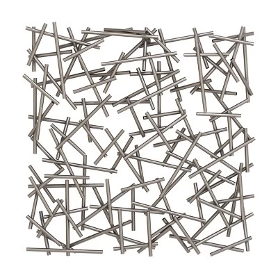 Create an excellent focal point on your walls paired with some cute accent tables, and level up your home with this amazing wall decor. Showcase your personality and turn your walls into an art gallery with this captivating wall décor. Hang this decor over an end table in your bedroom or living room, alongside other abstract pieces.. This item ships in 1 carton. Square-shaped abstract art metal wall decor. Can be hung vertically using the metal rings on the back; nails and screws not included. Suitable for indoor use only. This item ships fully assembled in one piece. This is a single silver colored wall sculptures. Contemporary style.