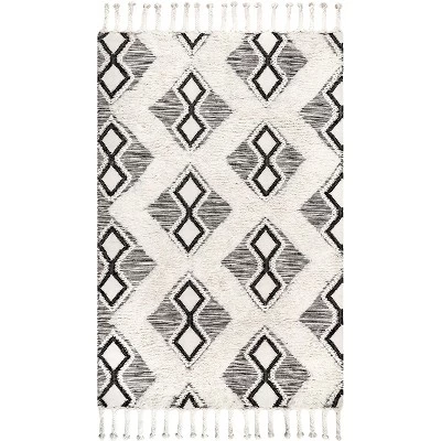 Inspired by staples of ethnic textiles, this rug blends shaggy comfort with a crisp geometric motif. Each piece is meticulously crafted of 100% wool and features a flat woven base.