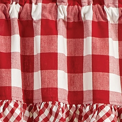 Uplift your everyday living space by introducing this classic buffalo check pattern valance. This lined window accessory features a timeless red and cream buffalo check design with a stylish accent of ruffled edges. Introduce this country farmhouse window treatment to your interior space to invite a fresh look without having to redecorate the entire room.