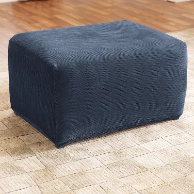 Introducing our most popular Stretch Pique fabric in an oversized ottoman to fit ottomans up to 49″ on the longest side. Our Stretch Pique; has a sleek look, tailored fit and ultra-soft finish. The subtle geometric design, in a slightly raised waffle-knit pattern, adds cozy texture. This favorite fabric is available in our greatest array of colors to accommodate any decorating style. Designed to fit rectangular ottomans around 29″ wide, 49″ long, and up to 20″ high. Fabric content 94% polyester/6% spandex. Machine washable.