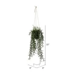 Vickerman 22″ Artificial Green Plastic Grass, comes in a Hanging Pot. Add a touch of natural beauty to your space with this beautiful Hanging Grass Plant. The pot measures 4″H x 5″W. 80%Plastic, 20%Wire
