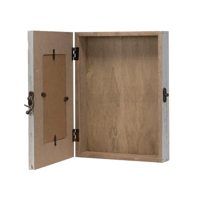 Add a bit of rugged charm to your space with the 4X6 Rustic Wood Box Frame White by Foreside Home & Garden. With distressed whitewashed wood and metal hardware, this photo box displays one 4 x 6″ photo in the lid, and opens to store your favorite trinkets & knick-knacks.