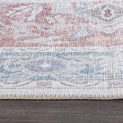 Unroll this vintage yet bohemian medallion design machine washable rug in your home for subtle but exciting décor. With bold colors and different size options, this rug will masterfully elevate your living space. This rug is strikingly easy to maintain clean. It is flat woven, without pile and made from OEKO-TEX certified premium recycled materials in the interest of preserving the environment and sustainability.